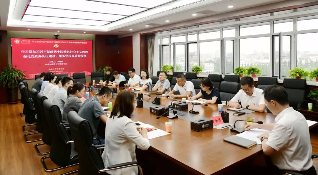 本网讯 8月17日上午,校党委书记李树林以普通党员身份参加党政办公室党支部集体学习,并以“学习贯彻习近平新时代中国特色社会主义思想,强化党政办队伍建设,服务学校高质量发展”为题,为支部全体党员讲授专题党课。