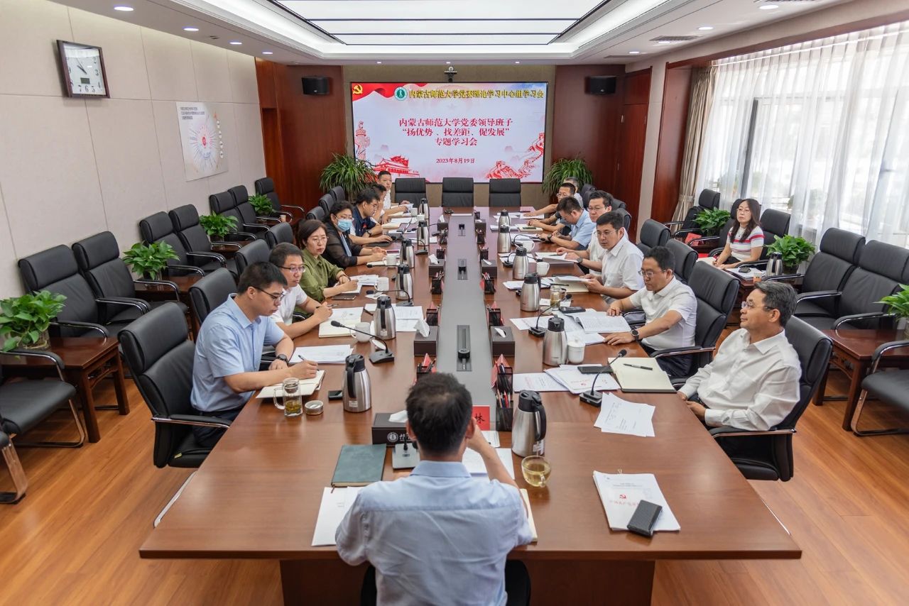 本网讯 为深入学习贯彻习近平总书记关于内蒙古的重要指示精神,推动主题教育再升温,按照自治区党委主题教育领导小组有关要求,8月19日,学校党委领导班子召开“扬优势、找差距、促发展”专题学习会。校党委书记李树林主持会议,党委理论学习中心组全体成员参加会议,部分职能部门负责同志列席会议。