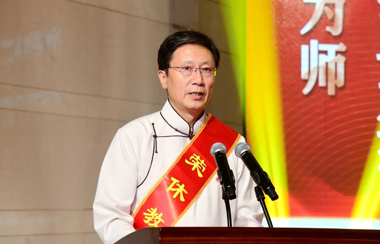 李树林代表学校向全校广大教职工、离退休老教师以及未来的教师致以最崇高的敬意,向受表彰的教师和同志表示热烈祝贺。他说,在第三十九个教师节到来之际,习近平总书记给全国优秀教师代表座谈会致信,充分肯定了广大教师为国家发展、民族振兴做出的重要贡献,深刻阐释了教育家精神的丰富内涵和实践要求,赋予了新时代人民教师崇高使命,为新时代教师队伍建设和师范院校高质量发展,指明了前进方向、提供了根本遵循。广大师生要牢记习近平总书记重托,加大对教育家精神的宣传研究阐释,把弘扬教育家精神贯穿教师队伍建设和师范人才培养全过程,引导全校师生以教育家精神为引领,勤奋学习、躬耕教坛,为教育强国、办好人民满意的教育做出应有贡献,使学校成为祖国北疆培养强国之师、研究强教之道的重要阵地。