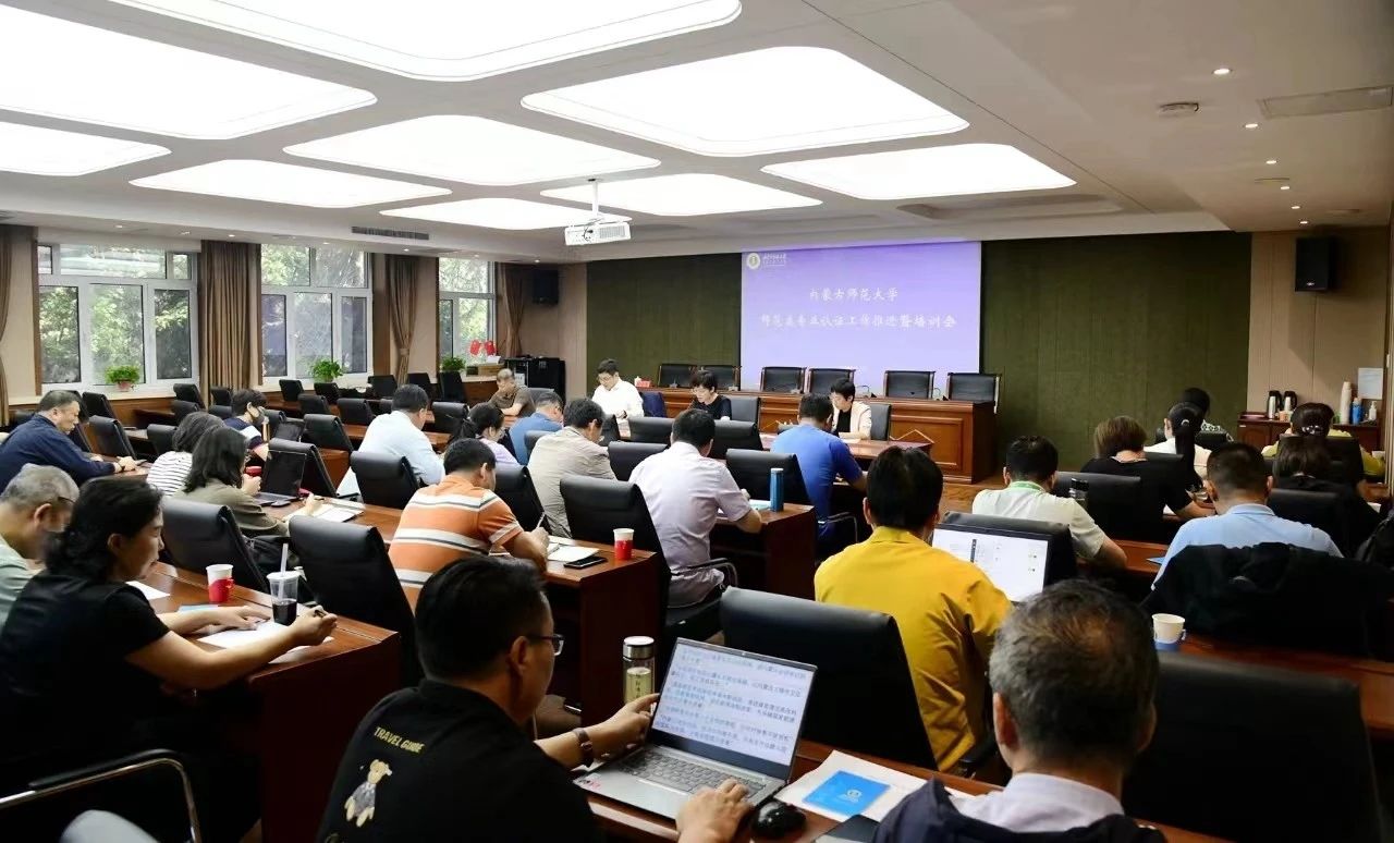 本网讯 为进一步深化师范类专业认证工作,充分做好化学、地理科学、计算机科学与技术三个专业正式认证专家组进校考查的迎接准备工作,9月13日下午,学校召开师范类专业认证工作推进暨培训会。党委委员、副校长韩巍出席会议。参与认证专业所在学院书记、院长、教学院长、专业负责人,学校相关职能部门和公共课开课学院负责同志及教务处工作人员参加会议。会议由教务处处长王利主持。