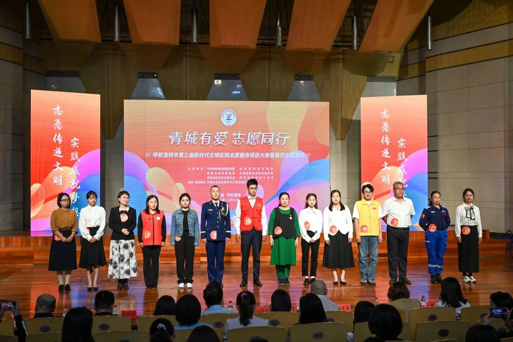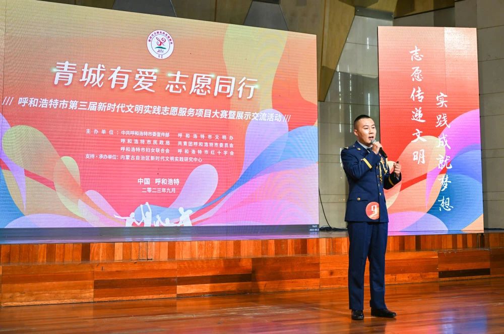 9月27日在呼和浩特市第三届新时代文明实践志愿服务项目大赛暨展示交流活动拍摄的各项目的汇报人。新华社记者 贝赫 摄