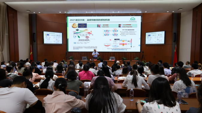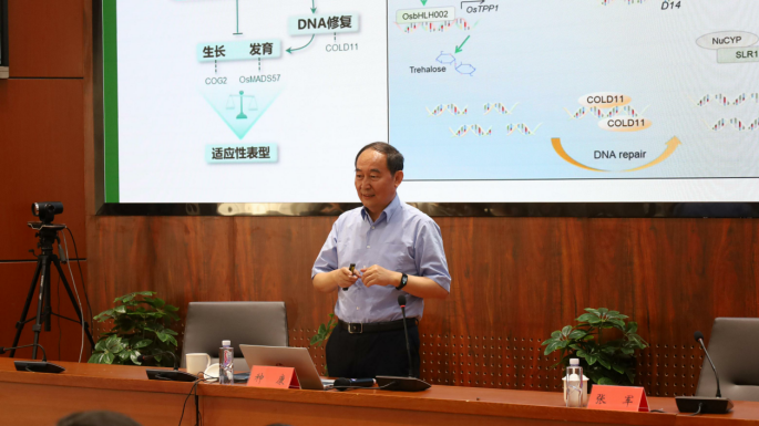 种康从水稻对低温信号的感知讲起,介绍了团队利用正反向遗传学的方法在籼、粳稻低温耐受性差异分子机制和水稻植物防御与发育平衡间的协调网络机制的系统研究成果,分享了利用 COLD1 基因模块结合杂交育种技术培育水稻抗寒新品种的方法,以及结合国家重大战略需求开展选题研究的宝贵经验。