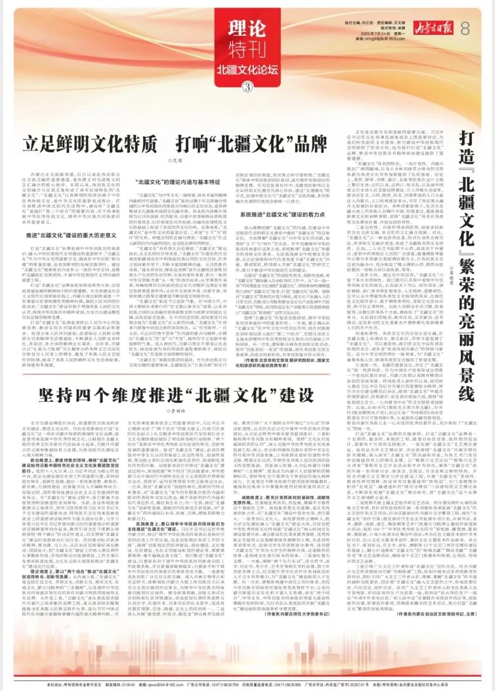 7月24日,《内蒙古日报》08版刊发beat365官网党委书记李树林的文章《坚持四个维度 推进“北疆文化”建设》。