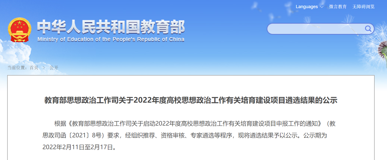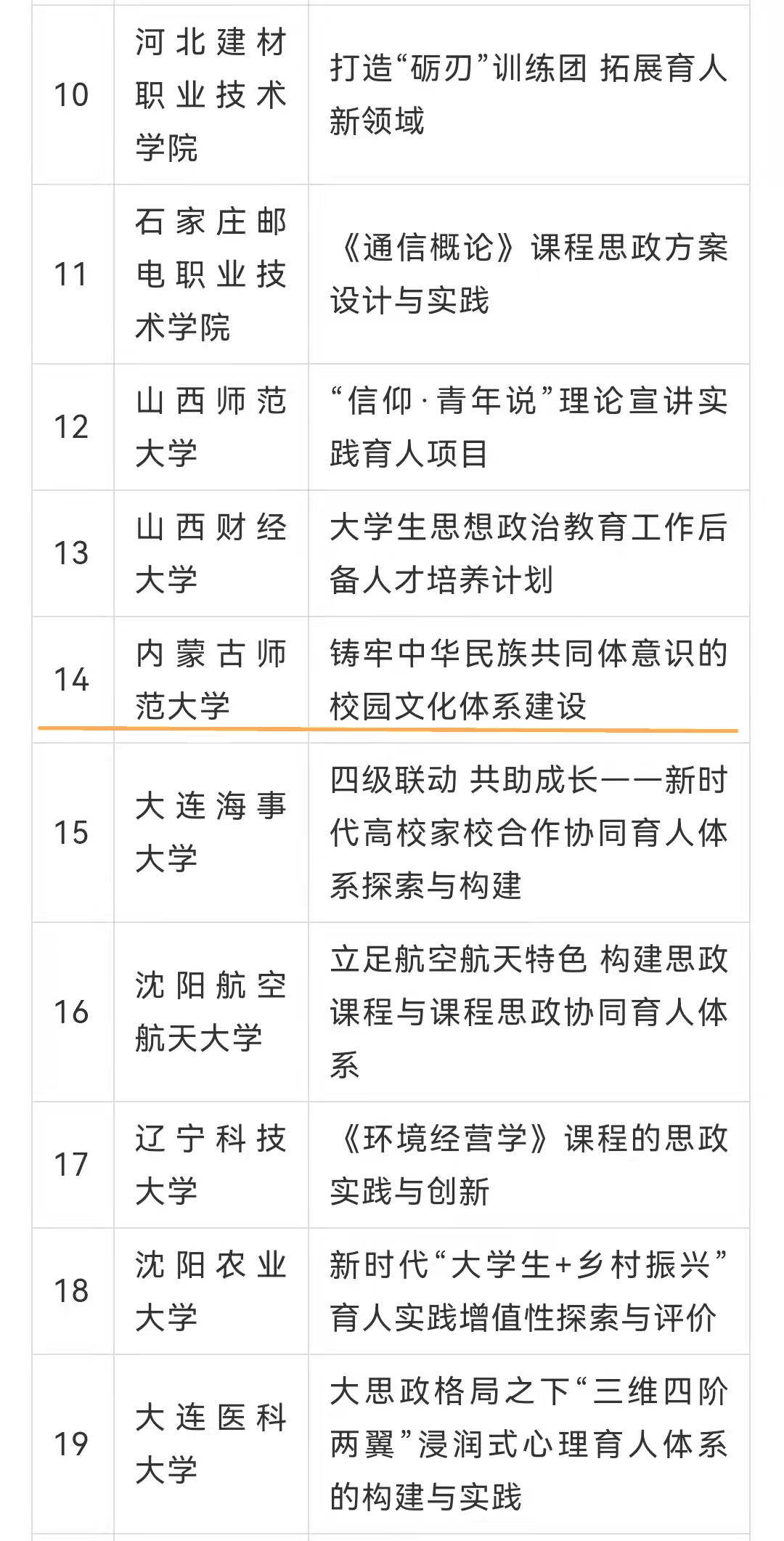本网讯 根据《教育部思想政治工作司关于启动2022年度高校思想政治工作有关培育建设项目申报工作的通知》(教思政司函〔2021〕8号)要求,经组织推荐、资格审核、专家遴选等程序,beat365官网由阿拉坦仓书记作为项目负责人,宣传部牵头、图书馆和文学院等部门共同申报的“铸牢中华民族共同体意识的校园文化体系建设”项目成功入选“2022年高校思想政治工作精品项目”公示名单。