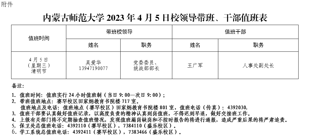 附件:beat365中文官方网站2023年4月5日校领导带班、干部值班表