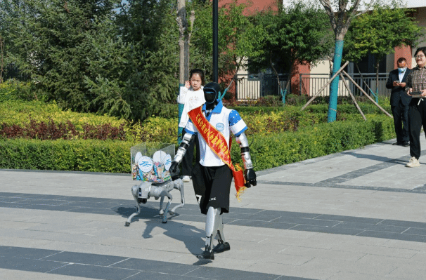 在校门口,两台憨态可掬的智能机器人成了迎新“主角”。它们身着灵动的装饰,一见到前来报到的学生和家长,便立刻挥动机械臂打招呼;遇到伸手想要互动的孩子,还会主动伸出“手”与他们轻轻相握,灵活摆动的手臂搭配萌萌的肢体动作,瞬间让校园门口充满童趣,不少孩子停下脚步,围着机器人不愿离开。面对家长“教室在哪个方向”“食堂从哪条路走”等疑问,一旁的老师会结合机器人的肢体指引,向家长耐心讲解校园布局。机器人在现场直观的动作互动,让新生和家长感受到智能科技的趣味,也让刚进校园的孩子快速消除了陌生感。“机器人会跟我握手,还会摆手臂跟我打招呼,太好玩啦!” 新生拉着家长的手,眼神里满是好奇与欢喜,迟迟不愿挪步。这种充满科技感的迎接方式,正是学校“人工智能+教育”办学思路的生动体现,从入学第一天起,就用沉浸式的智能互动,让孩子们近距离接触科技,在心中埋下探索创新的种子。