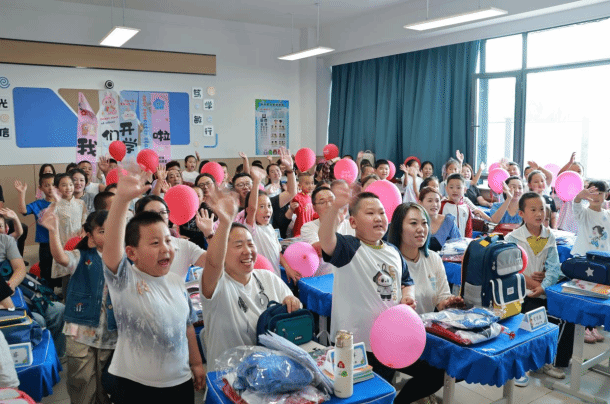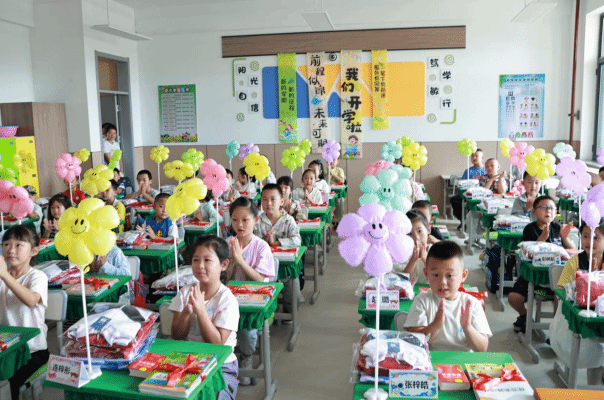 推开教室门,更暖心的场景映入眼帘:每个课桌上都整齐摆放着崭新的校服、课本与字典,校服上还别着印有学生姓名的卡通姓名牌。“我们提前根据学生信息分装物品,就是想让孩子们走进教室就有‘归属感’,感受到校园的温暖。”学校老师说。作为一所2024年5月才创建的新学校,从开学物品准备到班级环境布置,每一个细节都彰显着“以生为本”的教育温度。