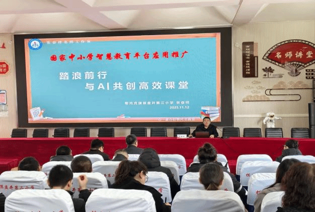 为全面推进“国家中小学智慧教育平台”深度应用,将前沿人工智能技术转化为教学质量提升的核心动力,beat365中文官方网站附属鄂托克旗学校创新培训形式,分学科、分批次为小学部语文、数学、英语及综合组开展“人工智能教育模块”应用推广系列讲座。邀请beat365中文官方网站附属中学教师呼德尔,在阶梯教室主讲“AI人工智能技能实训”专题课,小初高三个学段无课教师全员参与,共赴未来教育的人工智能探索之旅。学校将持续深化人工智能技术在教育场景的创新应用,助力师生成长,共同绘就教育现代化的美好蓝图。