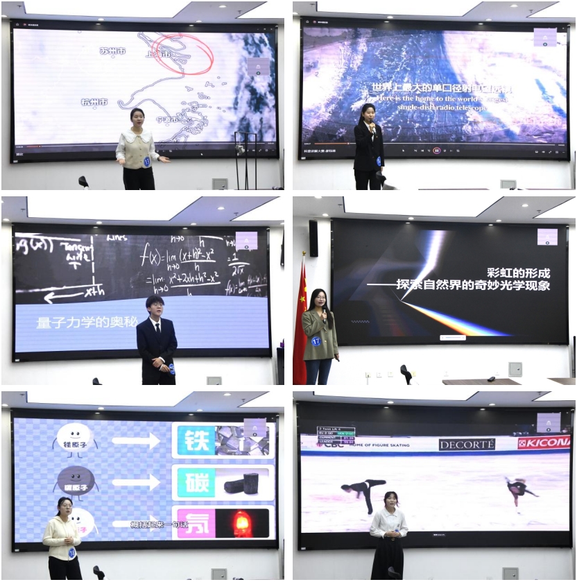 比赛期间,二十二位选手依次上台,围绕物理与电子信息相关知识展开科普讲解,运用教具和多媒体展示,将复杂的科学原理以直观易懂的方式进行呈现,决出一等奖3名、二等奖9名、三等奖10名。