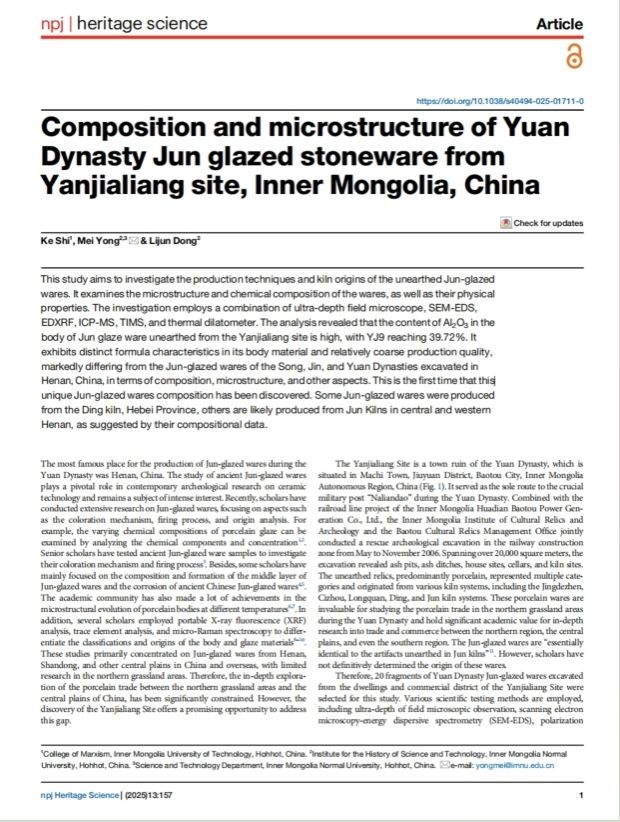 5月12日,beat365官网科学技术史研究院咏梅研究员团队在文化遗产领域权威期刊《np...